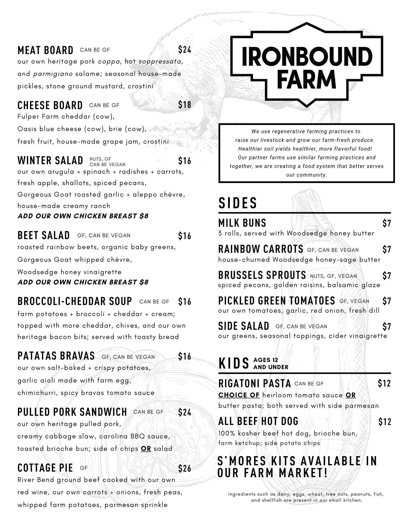 Although we don’t offer table service outdoors, our Tasting Room’s food menu is available to go on Saturdays and Sundays! Place your order with our bartender inside, pick your food up when it’s ready, and settle in at any of our outdoor tables or Adirondack chairs. Check out our Farm Market for s’mores kits and other outdoor-friendly snacks!